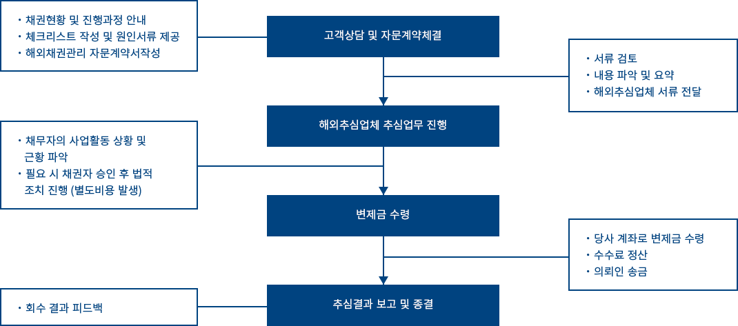 | Claim History (청구내역서) | 국내 채권자가 사건 개요 등을 간단히 정리 및 일부 결제가 있는 경우 그 내역을 기재하여 현재 청구하는 금액을 설명해야 함 |